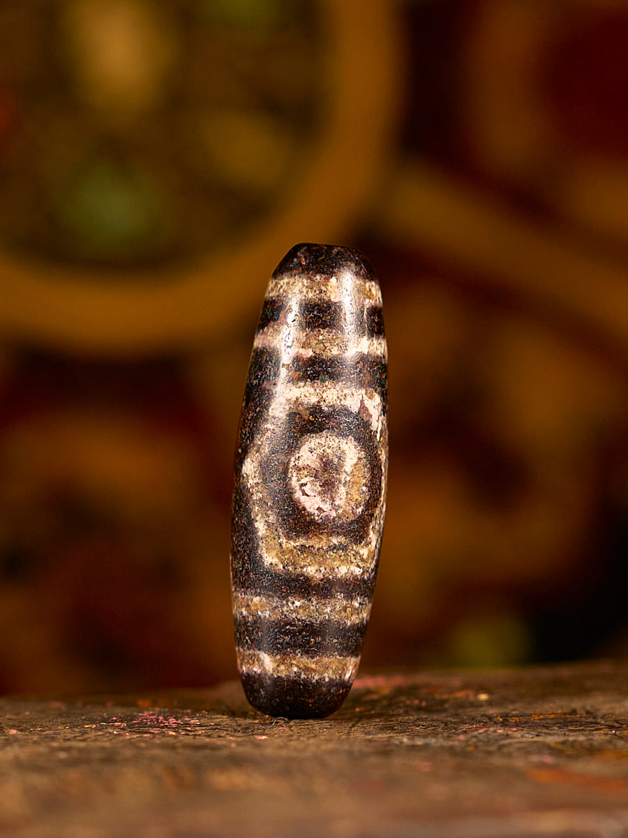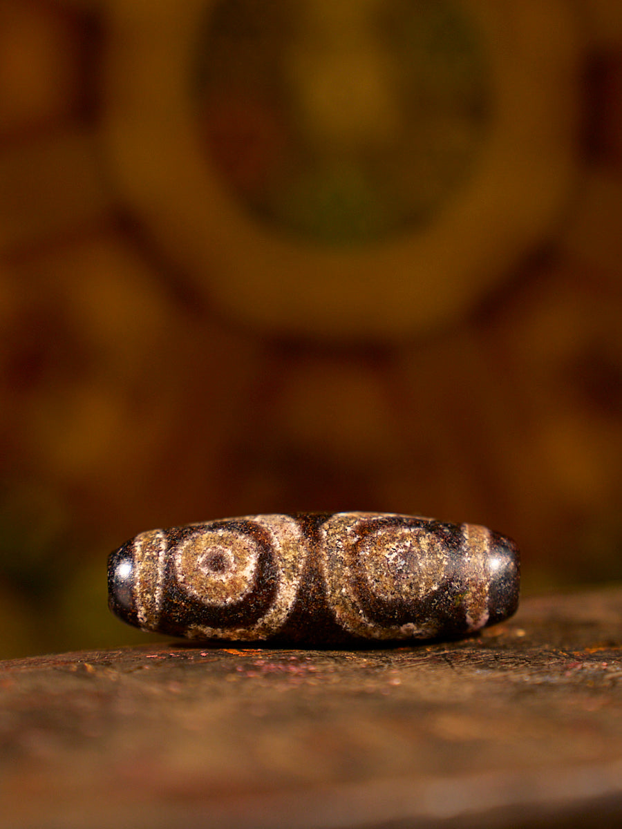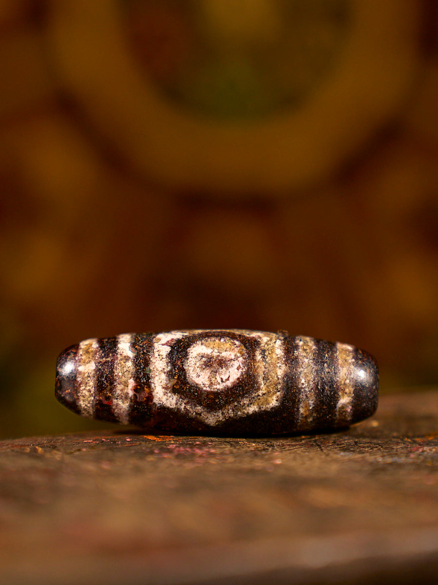 Zhangzhung Era Fortune Three-Eyed Agate Dzi Bead