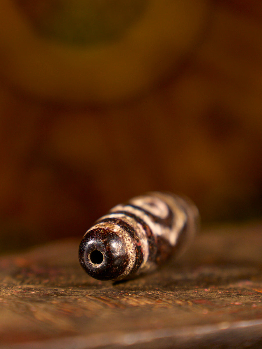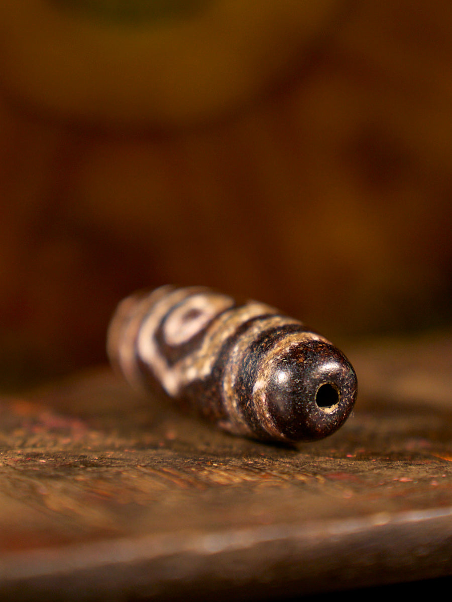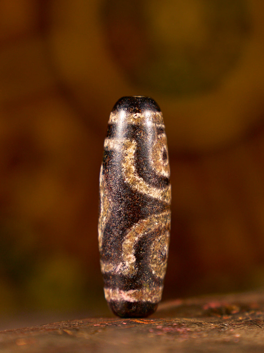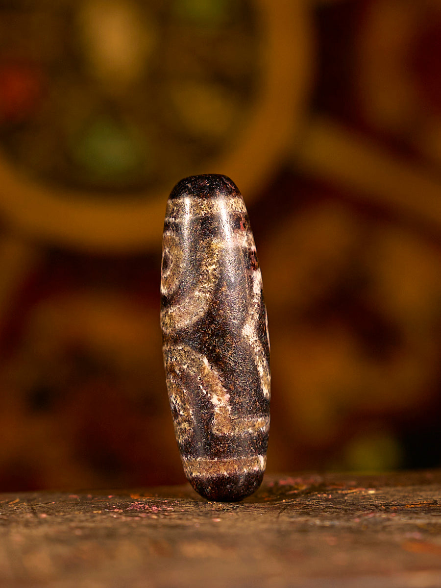 Zhangzhung Era Fortune Three-Eyed Agate Dzi Bead