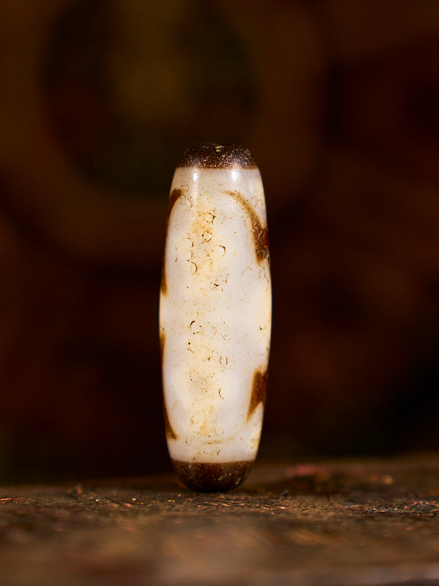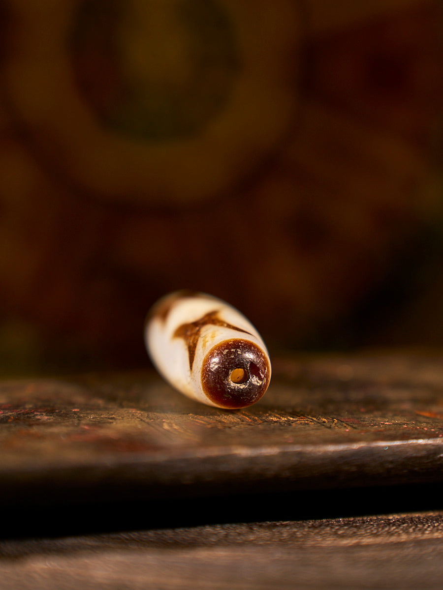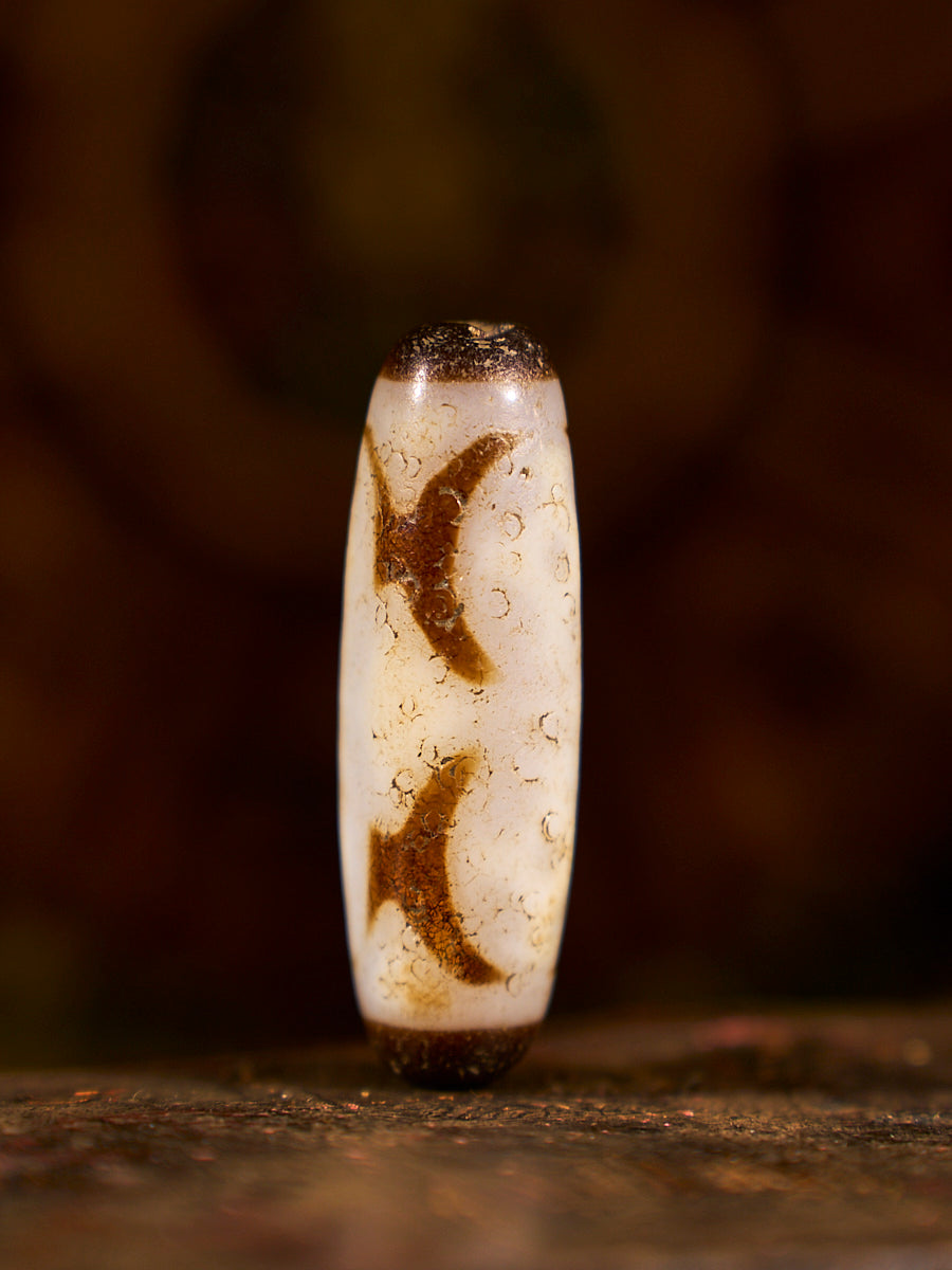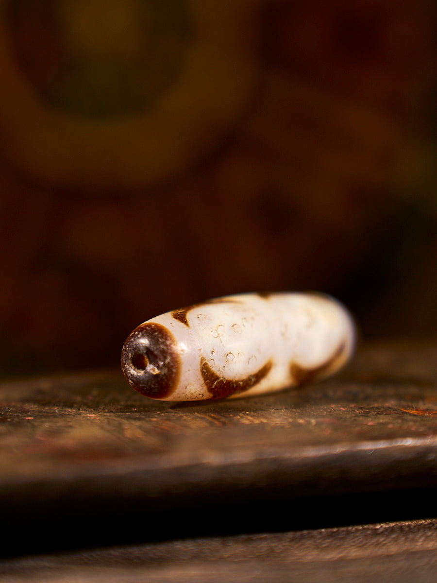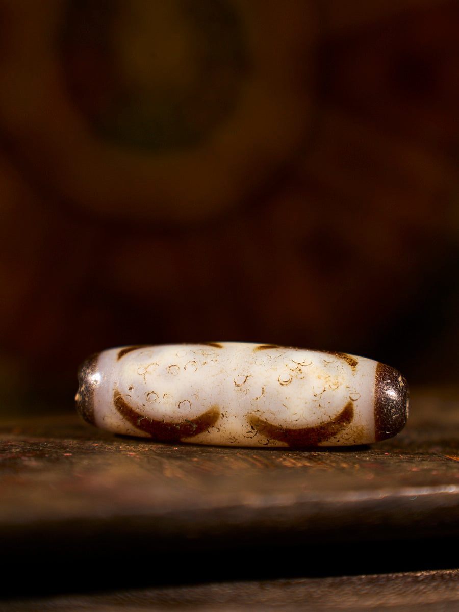 Zhangzhung Era Sacred Gift Vajra Four-Eyed Lunar Agate Dzi Bead