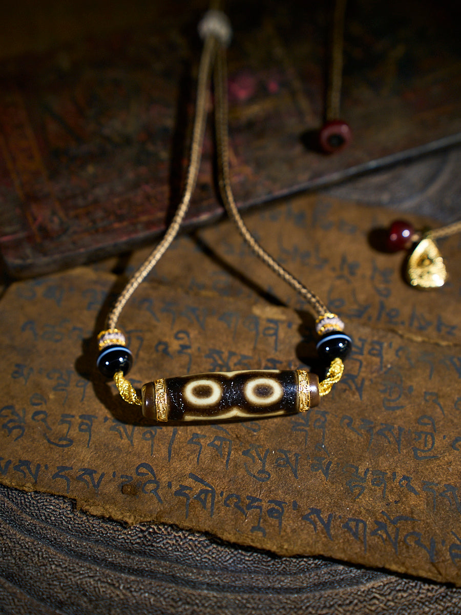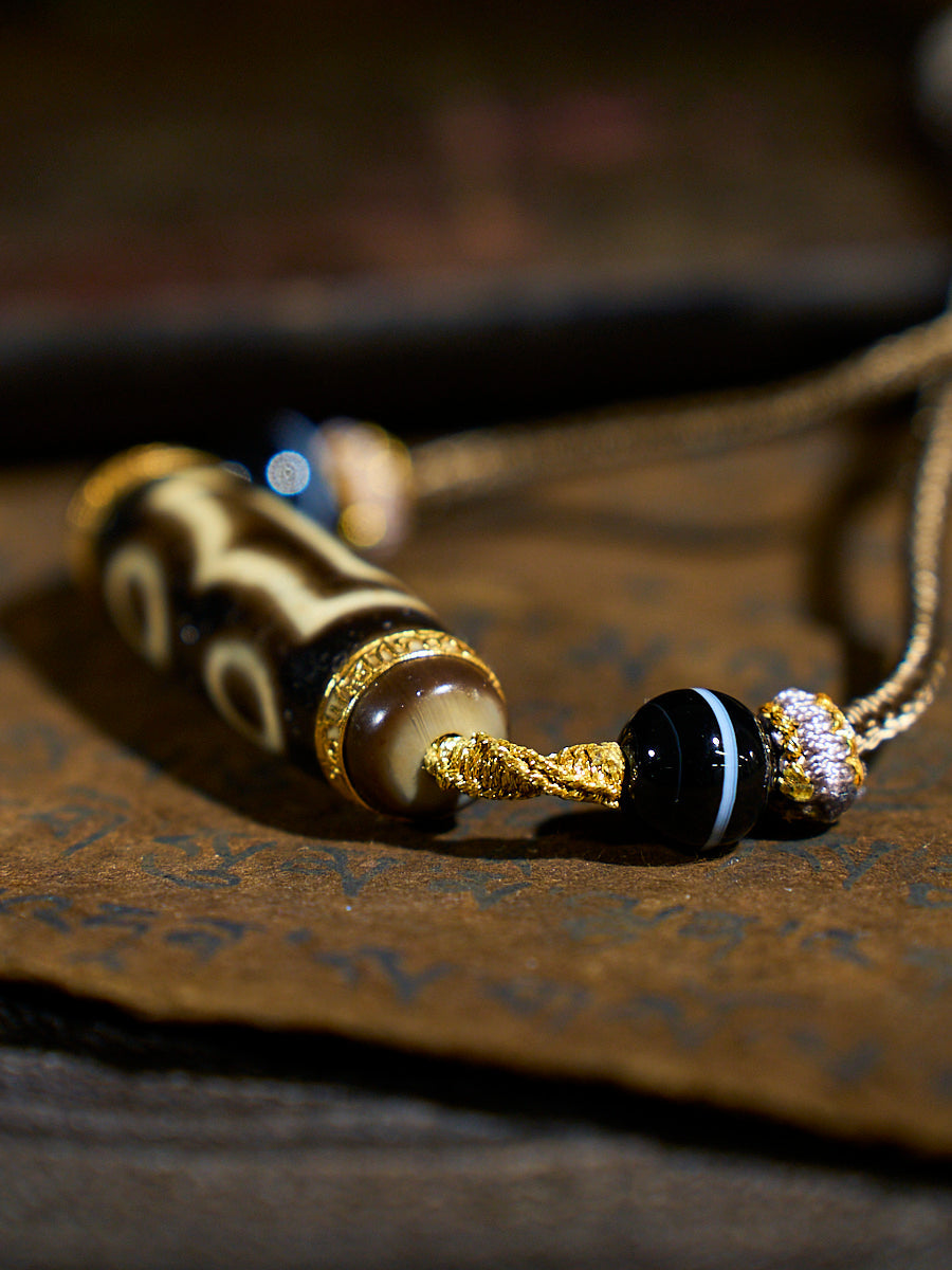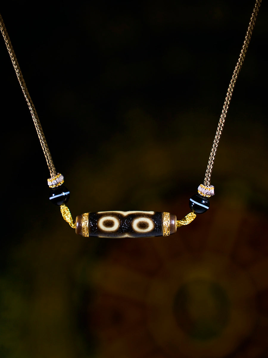 Divine Fortune Three-Eyed Agate 18K Gold Dzi Necklace