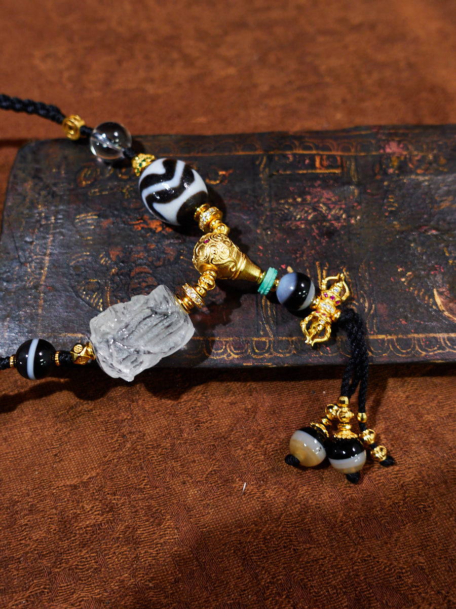 Eternal Flow Water-Wave Dzi & Crystal Agate Necklace