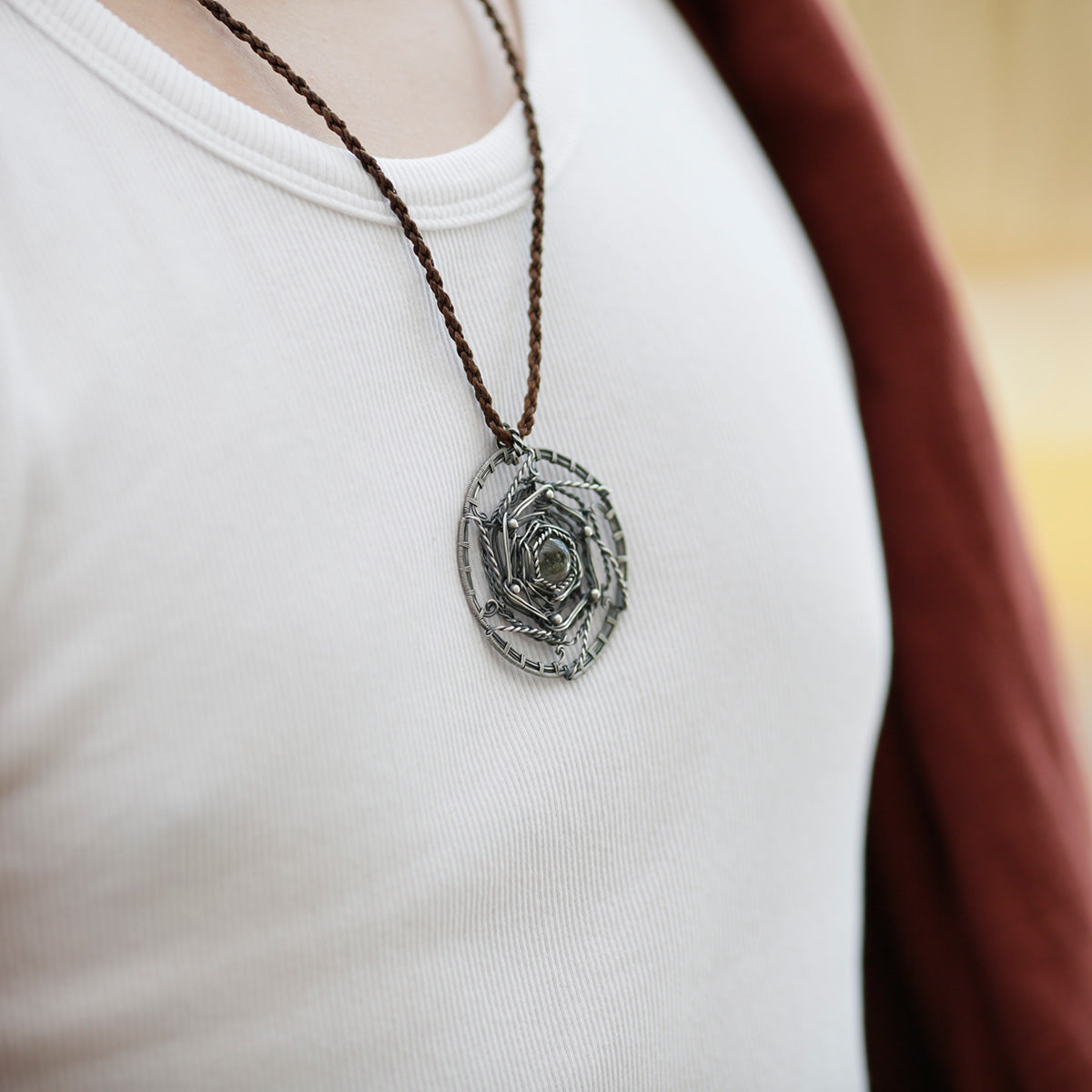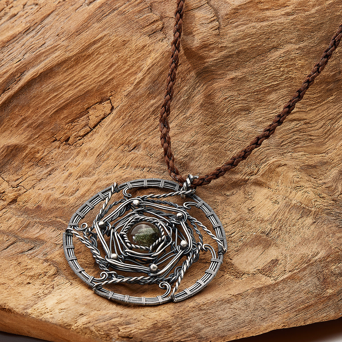 Healing Energy Mandala Crystal Quartz Silver NecklaceNecklace