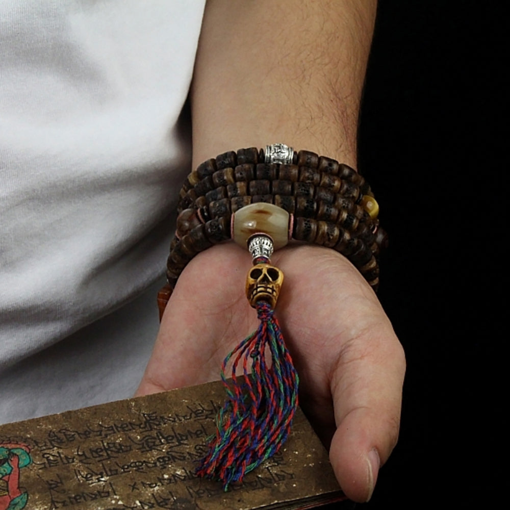 Sacred Guardian Handcrafted 108 Mala Beads - Silver & Yak Bone Talisman