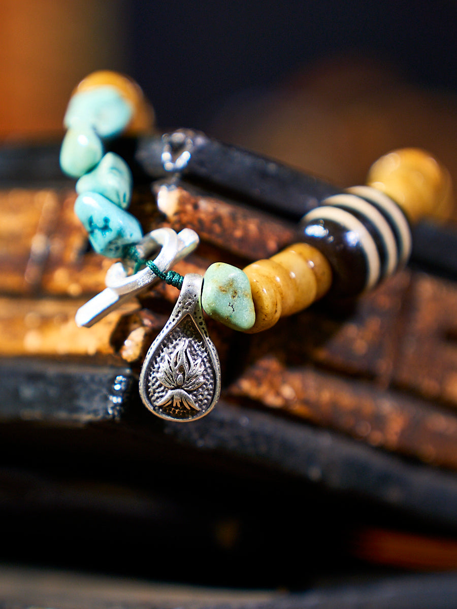 Sacred Protector Turquoise & Yak Bone Stering Silver Bracelet