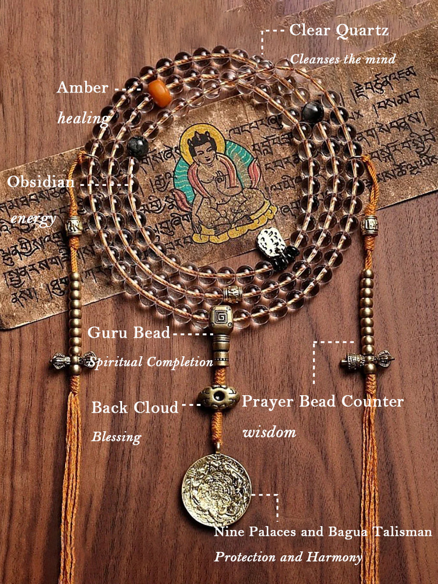 Soft Glow Clear Quartz 108 Mala Beads Necklace