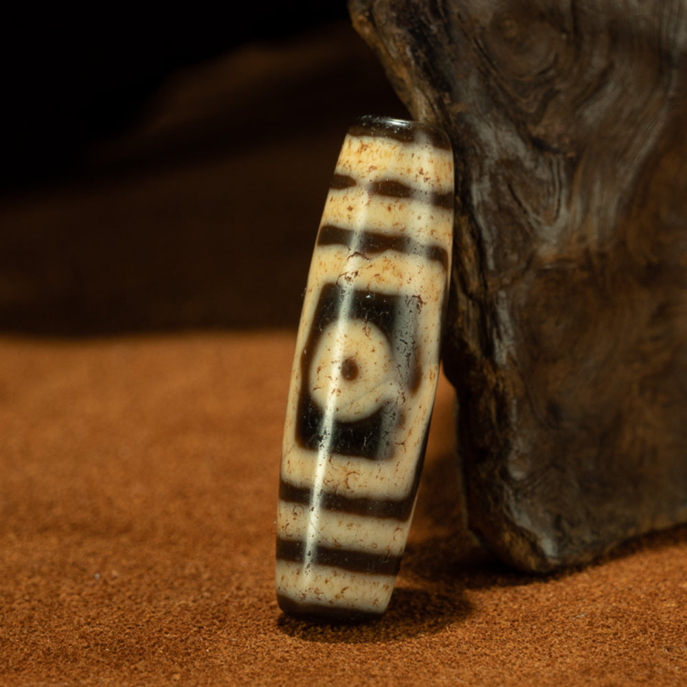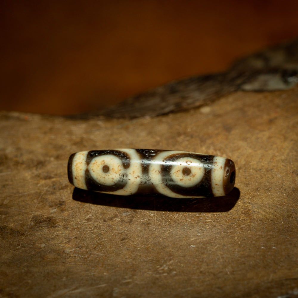 Three-Eye Ancient Dzi Bead Necklace for Protection and Prosperity