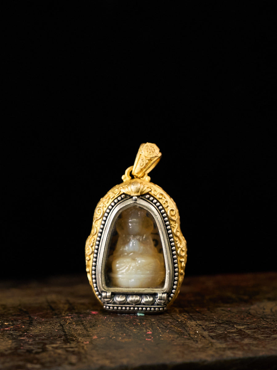 Tranquil Balance Agate Dzi Green Tara Silver Necklace