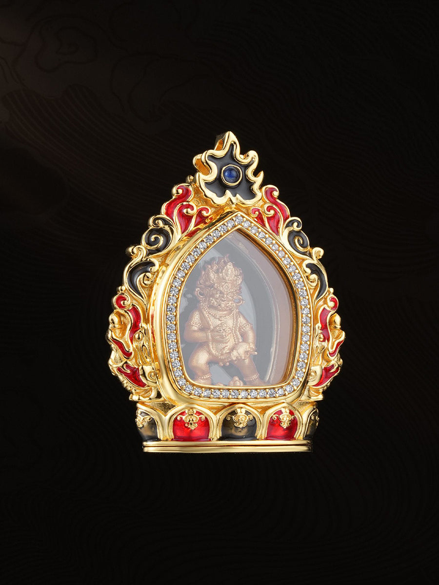 Wealth Protection Power Black Jambhala Gau Box Silver Statue